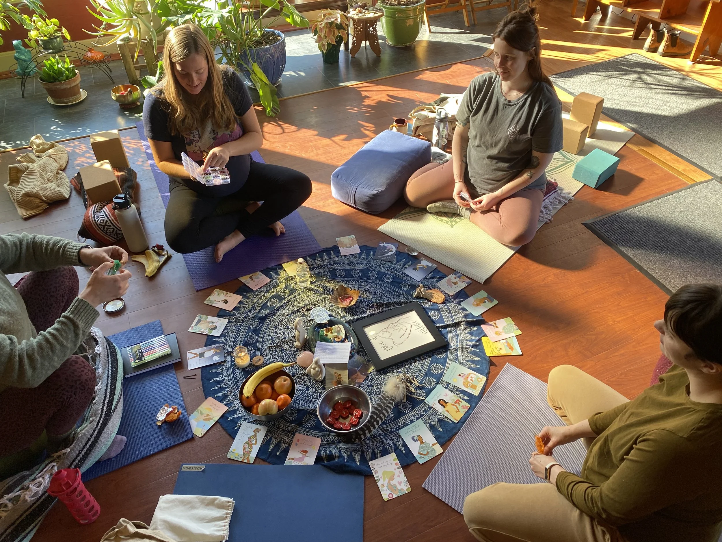 Our final gathering will consist of a co-created ceremony, where each particpant will be witnessed as they cross their own threshold into Parenthood. Following ceremony, friends, family and partners are welcome to join the group for a celebratory potluck.